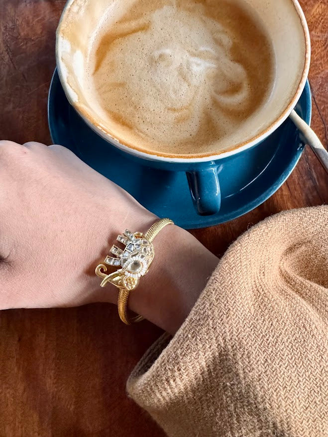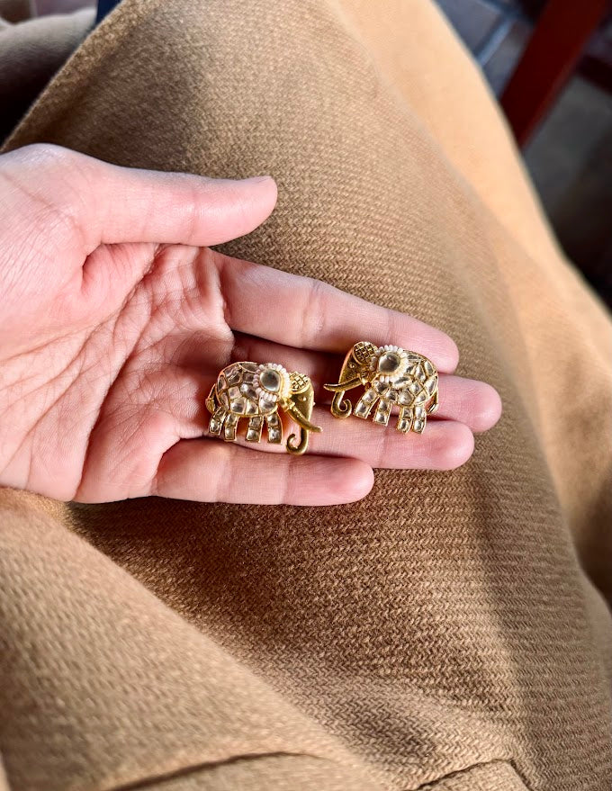 silver alloy base with gold polish. The main motif of the set isan elephant.